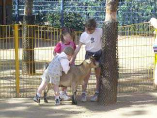 Upon entering the goat containment facility at the petting zoo area, Team members were not mobbed by a swarm of deranged goats! These goats lingered under pavillions or under shade trees. Numerous children roamed the yard unapproached by goats!